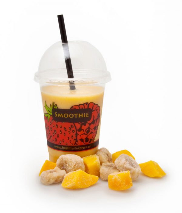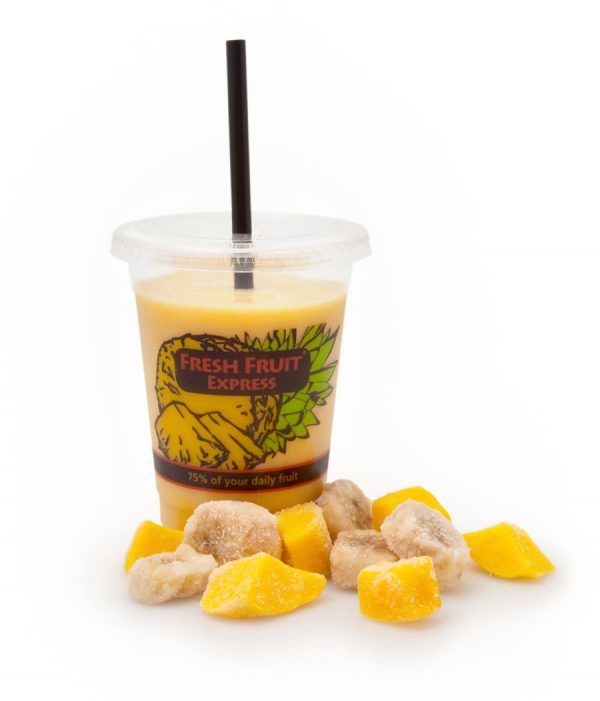 De mango is wereldwijd het meest gegeten fruit en heeft een welbekende klassieke smaak. In India worden mango’s gegeten om interne bloedingen te stoppen en om het hart en de hersens te versterken. Mango’s bevatten ook veel ijzer en verder vooral veel beta-carotheen (een sterk anti-oxidant dat je beschermt tegen ziekten en veroudering). Mango is ook rijk aan vitamine B en C. Wij verwerken de mango zo rijp mogelijk, zodat er een lekkere zoete natuurlijke smaak in onze smoothies en milkshakes ontstaat. Daarom gebruiken wij in onze fruitmixen de grote zoete mango chunks.
